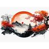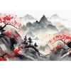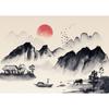 Chinesische Landschaft Vögel Wald Berg Fluss Koi Karpfen Fisch Tuschekunst Poster Leinwand Gemälde Wandkunst Drucke Bild Heimdekor