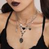 Retro Punk Style Black Love Heart Star Multilayer Pendant Necklace Set for Women Personality Hip Hop Rock Jewelry Set Accessory