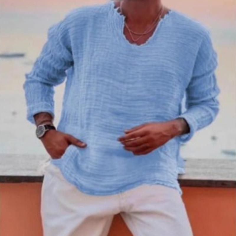 Mit seiner hochwertigen Konstruktion und dem stilvollen Design ist unser langärmliges Herrenhemd mit V-Ausschnitt die perfekte Wahl für alle, die sowohl Mode als auch Komfort schätzen.