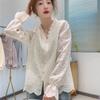 Trendy Spring 2025 V-Neck Long-Sleeve Petite French Lace Blouse for Women