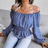 Mode Elegant Schulterfrei Saum Rüschenkante Bluse Damen Slim Fit Plissiert Einfarbig Hemd Langarm Lässig Einfach Kurzes Oberteil Sexy Damenbekleidung
