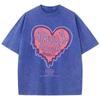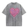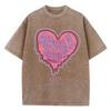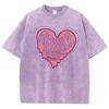 Damen Baumwolle Gewaschene T-Shirts Trend Distressed Lockere T-Shirts Der Bald Schmelzende Liebes-Aufdruck Kurzarm Kleidung