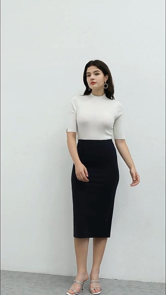 Damen Pendler Midilanger Rock Hüftrock, High-End Gefühl von Schlankheit, Schwarzer Professioneller Rock, Damen Stretchrock