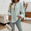 Damen Herbst und Winter Tops Lässig Locker Gestreiftes Hemd Mit Laternenärmeln