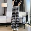 Retro Karierte Dünne Weitbeinige Hose Locker und Lässig Klein Geschnitten Sonnenschutz und Mückenschutz Gerade Bein Hose