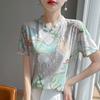 Frühlings- und Sommermode Gerendeter Bedruckter Kurzarm Lockerer Lässiger Strickpullover Dünnes Tencel Halbarm