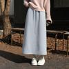 High Waist Midi A-Line Plus Size Women's Skirt - Drapey, Slit, Fleece-Lined for Autumn/Winter