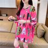 Sommer Vintage Print T-Shirt Mode Damen Übergroß Grafik Langarm T-Shirts Y2k Oberteile Harajuku Hip Hop Streetwear Jugend