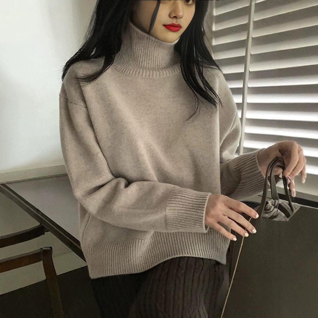 Women's Knitted Sweater: Autumn/Winter Hong Kong Style, Lazy Fit, Slimming, Thick, Versatile as Outer or Inner Wear