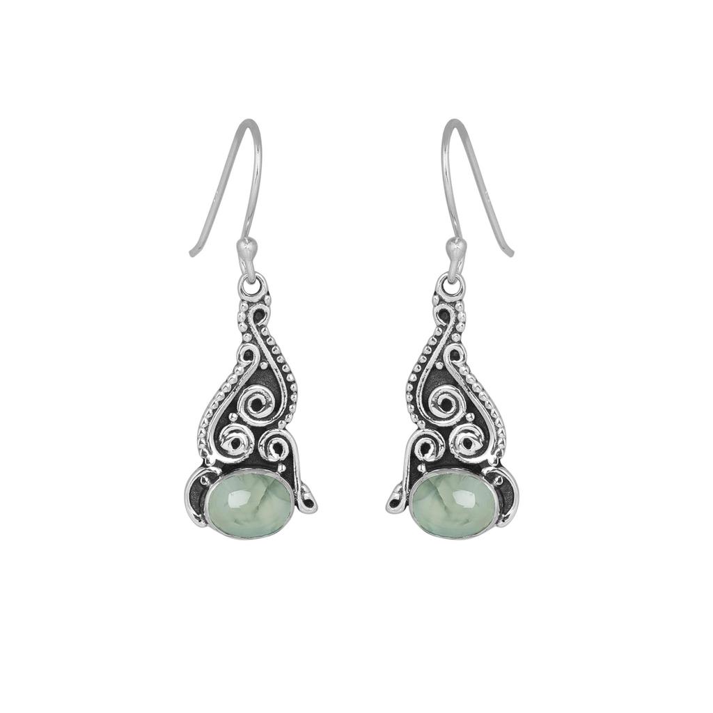 Prehnit Silber Ohrring, Damen Ohrring, Silberschmuck, 925 Sterling Silber Handgefertigter Schmuck