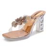 Summer Rhinestone Bow Cross One-Word Slippers Rhinestone Sexy Transparent Crystal High Heel Sandals