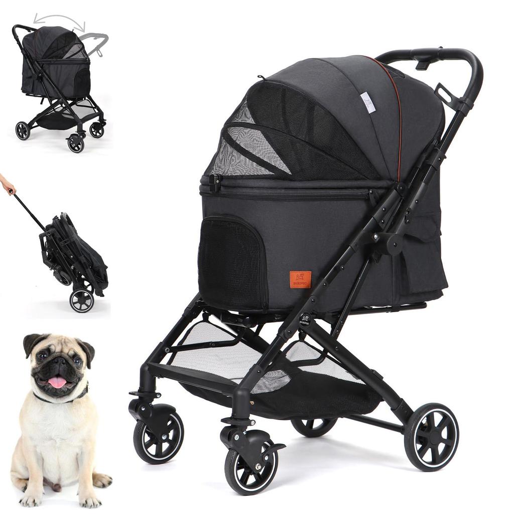 [Face-to-face pet cart] Simply pull it to easily change the handle method, allowing you to care for your pet anytime, anywhere. The large 135-degree opening makes it very convenient for pets to enter and exit. It can be easily folded and stored when not in use, whether at home or out. It is compact, so it can be stored in small spaces such as entrances and car trunks. It also has an extendable handle like a suitcase, so it can be used for travel!