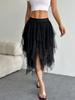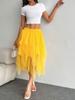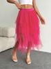 Dieser hochtaillierte Tüll-Midirock ist eine schicke und vielseitige Ergänzung für Ihre Frühlingsgarderobe und vereint mühelos einen sportlichen Flair mit femininer Eleganz.. Dieser Rock aus einem festen Mesh-Material zeichnet sich durch ein unregelmäßiges Mesh-Design aus, das Ihrem Outfit eine einzigartige Textur und fließende Bewegung verleiht.. Perfekt für verschiedene Anlässe, sein sportlicher Stil sorgt sowohl für Komfort als auch für ein modernes Aussehen.. Ob zu einem lässigen Oberteil oder einer formelleren Bluse kombiniert, dieser Tüllrock ist ein Must-Have für die kommende Saison.