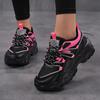 Sneakers für Damen, atmungsaktiv, lässig, flach, mit Schnürung, schwarze, klobige Sneakers, rutschfeste Plateauschuhe