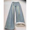 Wir präsentieren unsere Damen-Retro-Fleece-gefütterte High-Waist Wide-Leg Jeans in Übergröße aus der Winterkollektion 2024, entworfen, um Stil und Komfort mühelos zu vereinen.. Diese Jeans aus hochwertigem Denim-Material haben eine schmeichelhafte hohe Taille, die Ihre Kurven betont und gleichzeitig eine bequeme Passform bietet.. Die Silhouette mit weitem Bein bietet einen Hauch von Retro-Charme mit einem modernen Twist und macht sie perfekt für jeden lässigen oder sportlichen Ausflug.. Gefüttert mit Fleece, sorgen diese Jeans für Wärme und Gemütlichkeit in den kälteren Monaten und ermöglichen es Ihnen, einen mühelos schicken Look beizubehalten, ohne Kompromisse beim Komfort einzugehen.. Ob Sie einen lässigen Tag mit Freunden verbringen oder einen gemütlichen Spaziergang genießen, diese Jeans sind eine unverzichtbare Ergänzung für Ihre Wintergarderobe.