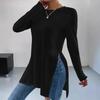 2024 Trendiges lässiges T-Shirt mit Rundhalsausschnitt und langen Ärmeln mit Seitenschlitzen - Unifarben für Herbst/Winter