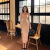 Spicy Girl Damen Herbst Schnürung Taille Schlankmachendes Bodycon Midi-Kleid