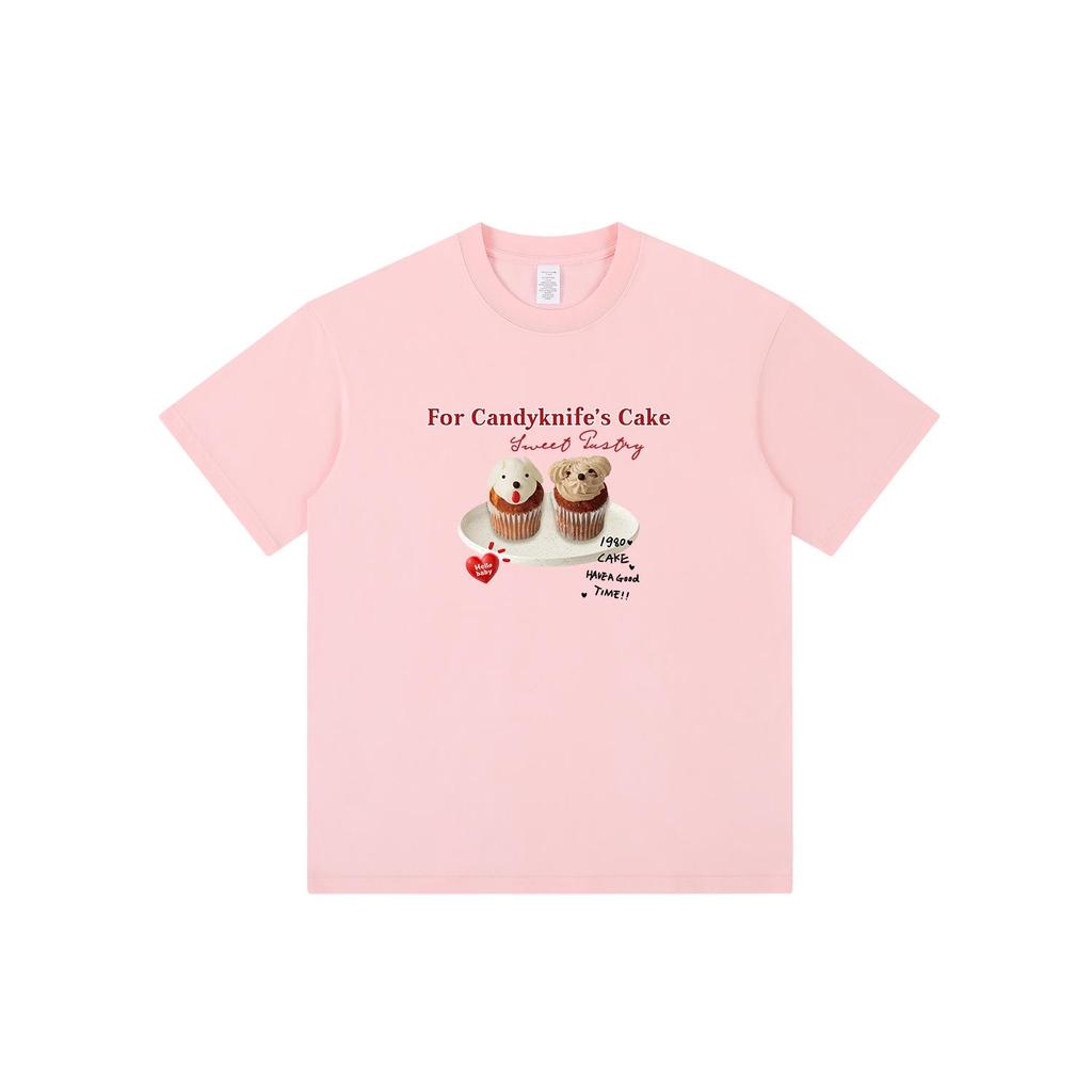 Korean Style Summer Cake Print Girlish Creamy Short Sleeve T-Shirt - Loose Round Neck Couple Outfit