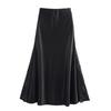 2025 Spring Women's European & American Style Double-Sided Lace High Split Fishtail Satin Midi Skirt