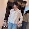 Korean Style Openwork Lace Lapel Blouse - 2025 Spring Women's Loose Fit, Long Sleeve