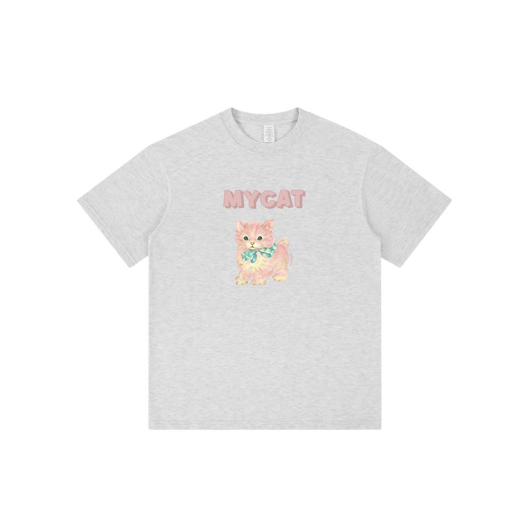 This women's T-shirt offers a delightful blend of comfort and style, crafted from soft cotton for a relaxed fit. It features a charming kitten print that adds a playful touch to your everyday wardrobe. Designed with a loose round neckline and short sleeves, it's perfect for casual outings or lounging at home. With its cute and trendy decoration, this T-shirt effortlessly elevates any outfit while ensuring maximum comfort.