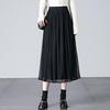 Brand Discount Women's High Waist Pleated Silk Midi Skirt with Puffy Mesh Overlay