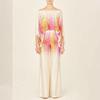 Elevate your wardrobe with this stylish women's set, featuring a print top and wide-leg pants designed for both comfort and flair. The top boasts elegant batwing sleeves, adding a touch of sophistication to its sportive style. Crafted from high-quality polyester, this set ensures durability and a soft touch against the skin. The vibrant print and relaxed fit make it perfect for casual outings or lounging in style.