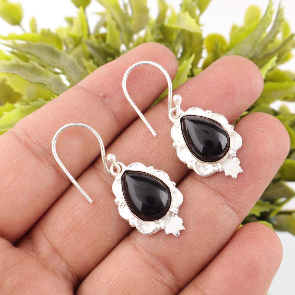 Genuine Black Tourmaline Gemstone 925 Sterling Silver Handmade Dangle Earrings EE-163-31