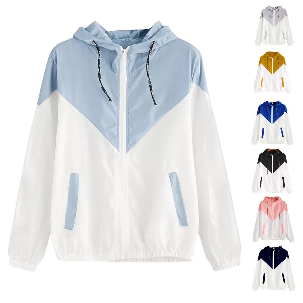 Frauen Langarm Patchwork Dünne Skinsuits Mit Kapuze Zipper Taschen Mantel Top