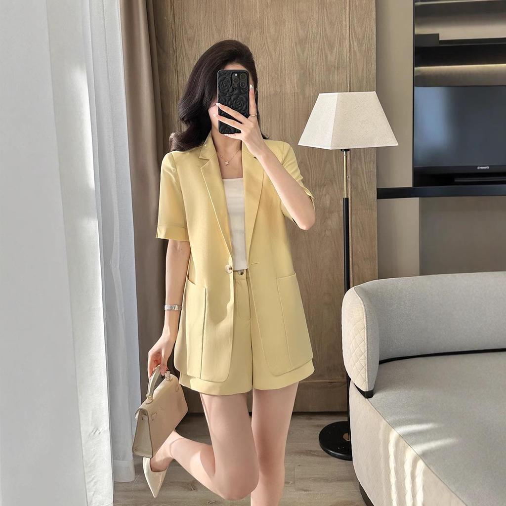 Werten Sie Ihre Sommergarderobe mit diesem eleganten zweiteiligen Set auf, bestehend aus einem schicken Kurzarmblazer und passenden Shorts.. Dieses stilvolle Ensemble aus hochwertigem Polyester bietet sowohl Komfort als auch Atmungsaktivität und ist somit perfekt für Ausflüge bei warmem Wetter.. Das moderne Design und die maßgeschneiderte Passform sorgen für einen gepflegten und dennoch entspannten Look, ideal sowohl für legere als auch für halbformelle Anlässe.. Vielseitig und trendig, ist dieses Set eine unverzichtbare Ergänzung für die Sammlung jeder modebewussten Frau.