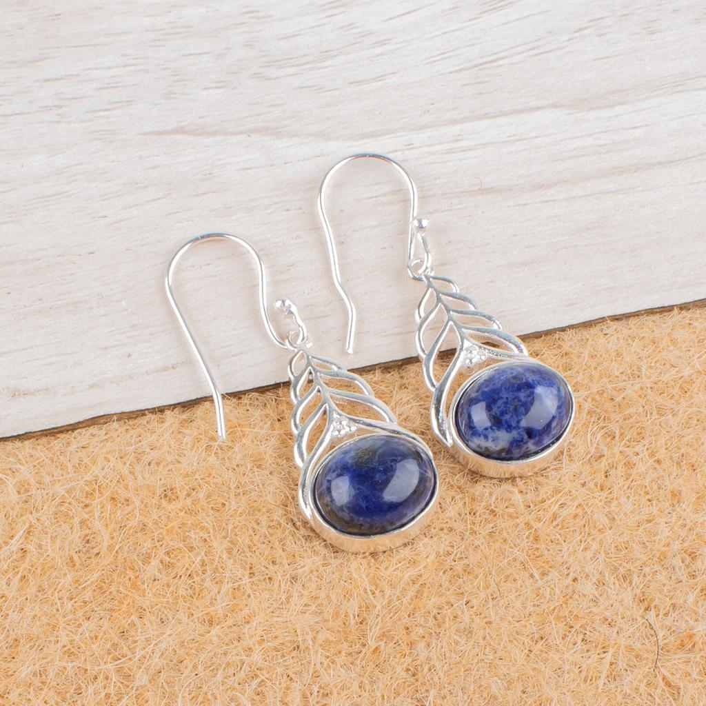 Sodalite Gemstone 925 Sterling Silver Jewelry Designer Earrings1.64" Women Gift CE-1-20
