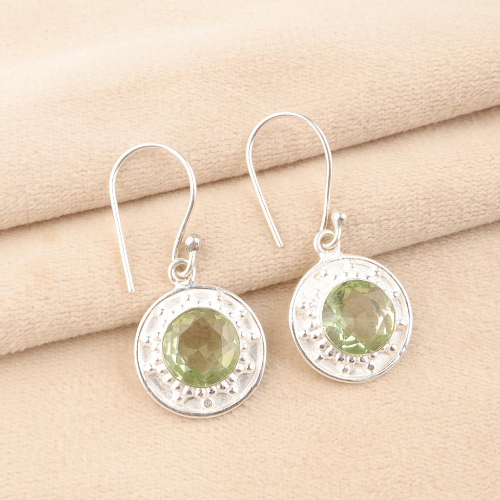 Natural Green Amethyst 925 Sterling Silver Handmade Fashionable Earrings 1.5" EE-153-14