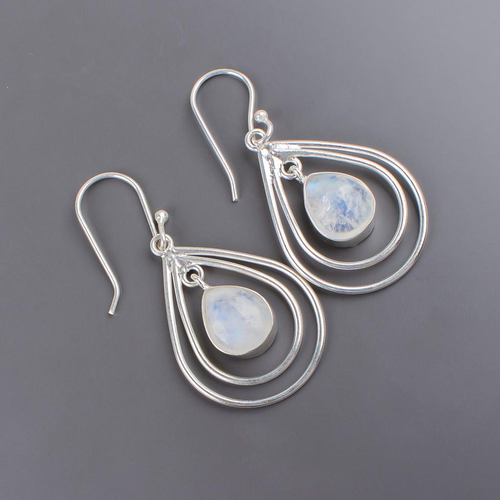 925 Sterlingsilber Regenbogenmondstein Edelstein Schmuck Handgefertigte Ohrringe 2,00" EE-34-30