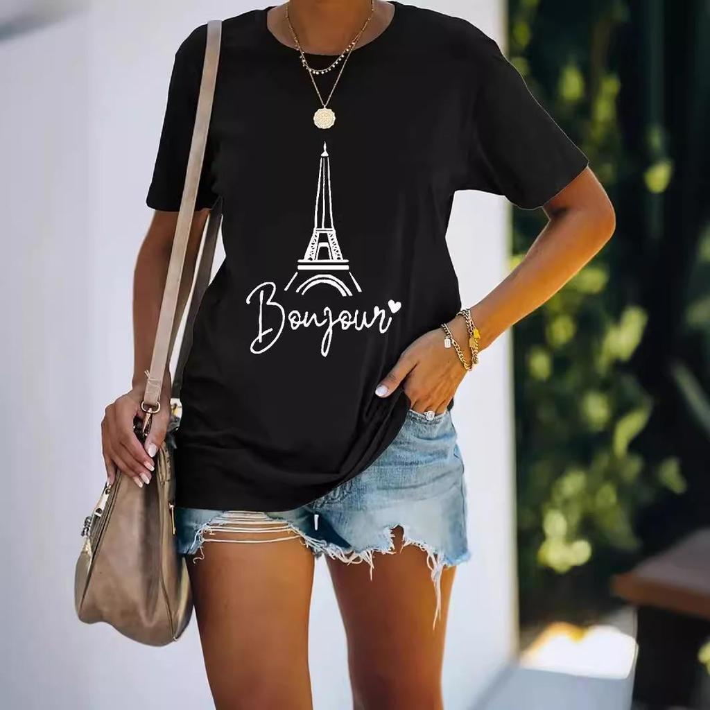 Elevate your wardrobe with these stylish short-sleeved printed tops, perfect for any season. Crafted from high-quality polyester, these tops offer a comfortable and breathable fit. Featuring a classic round neckline, they provide a versatile option that pairs beautifully with both casual and formal outfits. Enjoy the contemporary allure of European and American designs with vibrant prints that add a touch of personality to your ensemble. Ideal for everyday wear, these tops combine fashion and function effortlessly.