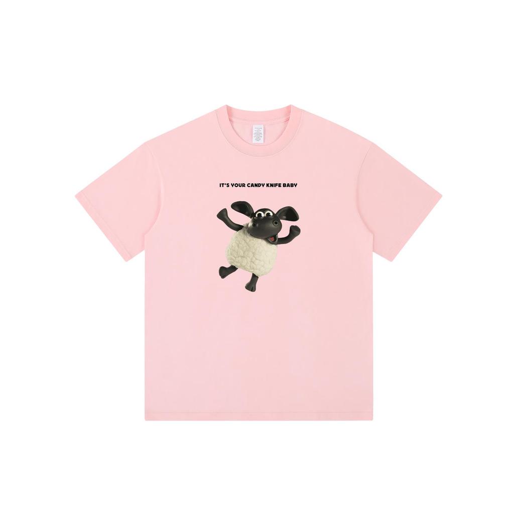 Trendy Oversized Cartoon Lamb Print Unisex T-Shirt - Round Neck, Short Sleeve