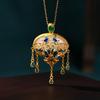 Retro Chinesischer Hofstil Emaille-Halskette mit Jade-Imitation, Blumen- und Schmetterlingsdesign, Quasten-Akzent