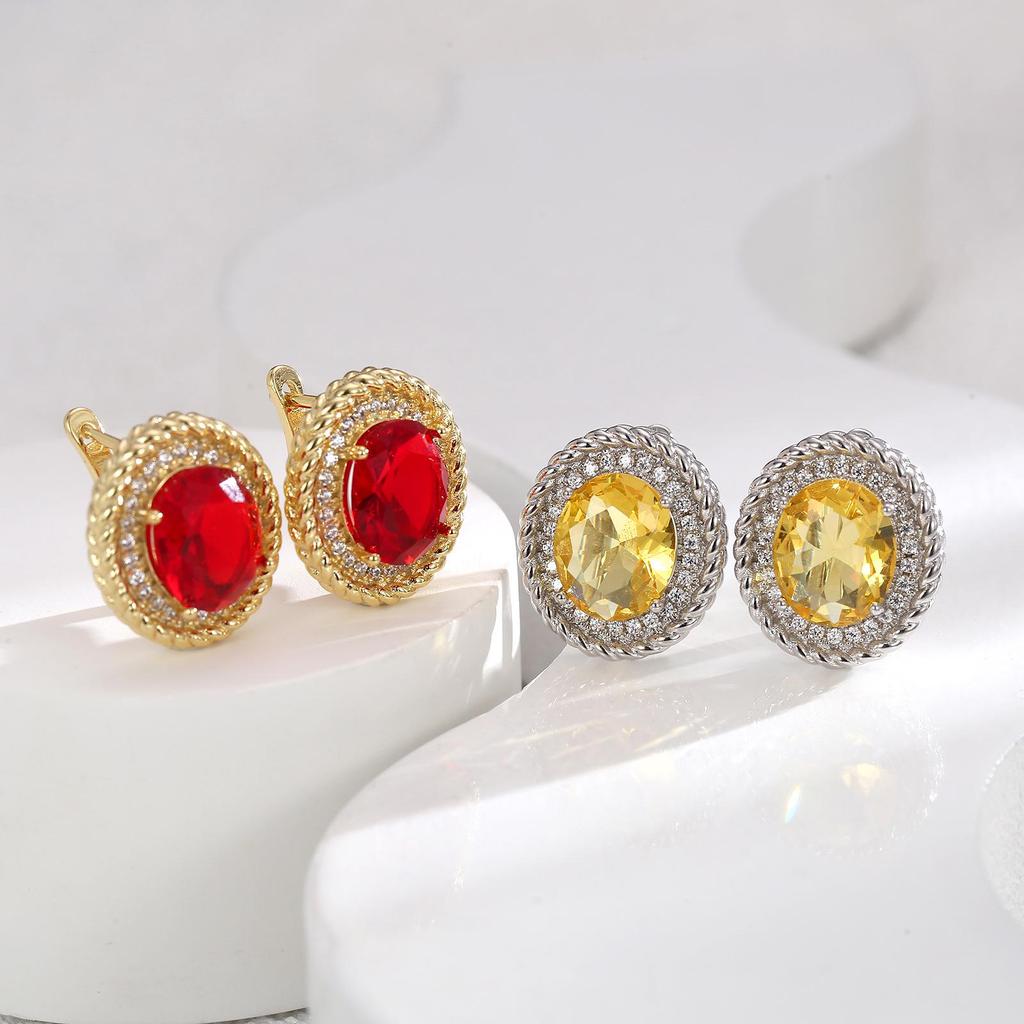 Elegant Retro Color Treasure Zircon Oval Ear Cuffs