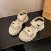 Strandsandalen Damen Sommer Neu Klettverschluss Muffinsohle Strandschuhe Mode Plateau Lässig Student Coole Hausschuhe