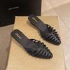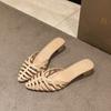 Frühling und Sommer neue Hausschuhe Damen Außenbekleidung Temperament literarisch und retro spitz niedriger dicker Absatz Sandalen Schweinekäfigschuhe