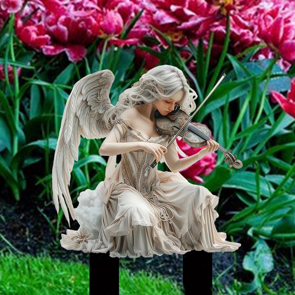 - 【Design】: This 2D Flower Pot Ornament adopts an elegant fairy shape playing the violin, which brings visual enjoyment and creates a warm atmosphere. You can easily insert it into the ground to enhance the overall beauty of the outdoor area