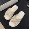 Dicke Sohle Hausschuhe Damen Sommer Koreanische Version der neuen Xiaoxiangfeng Kreuz Perle Mode Außen tragen Muffin coole Hausschuhe