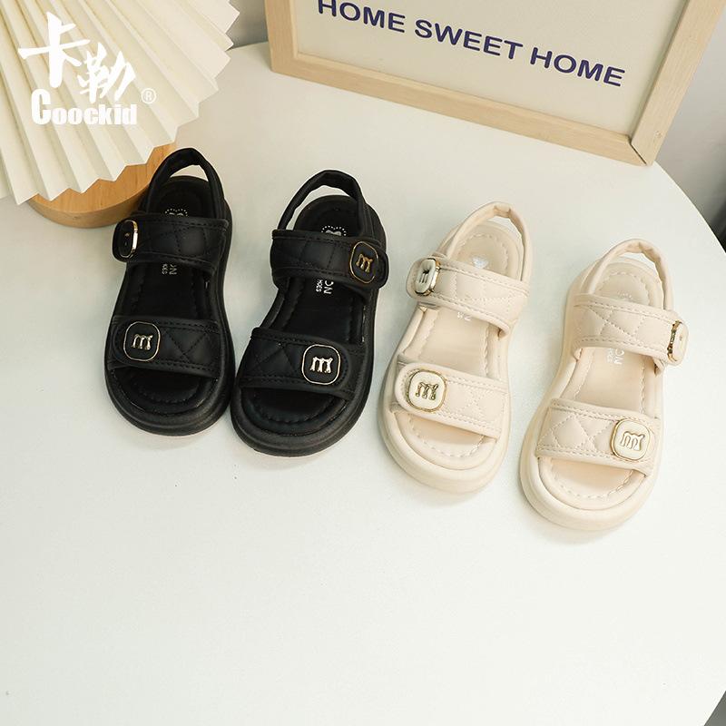 Baby girl fashion Velcro sandals summer new girls open-toed beach shoes non-slip soft sole medium and older children