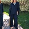 Damen Locker Bequem Lässig Modisch Baumwolle Und Leinen Einfarbig Ellbogenärmeliges Oberteil Und Hose Zweiteiliges Set