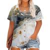 Übergröße Damenmode Lässig Vintage Bedruckt O-Ausschnitt Kurzarm Knopf T-Shirt Top