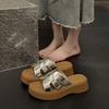 Thick-bottomed woven cool slippers for women to wear in the summer of 2025 New fairy wind comfortable and lightweight one-word beach slippers