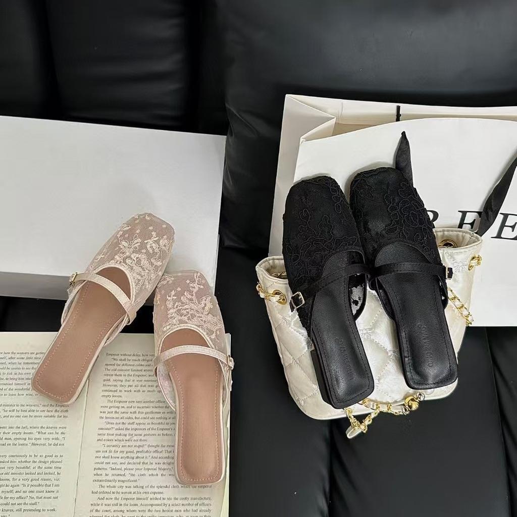 Neue Mode Vielseitige Mesh Feen Damen Schuhe Spitze Flacher Absatz Eckiger Kopf Sandalen