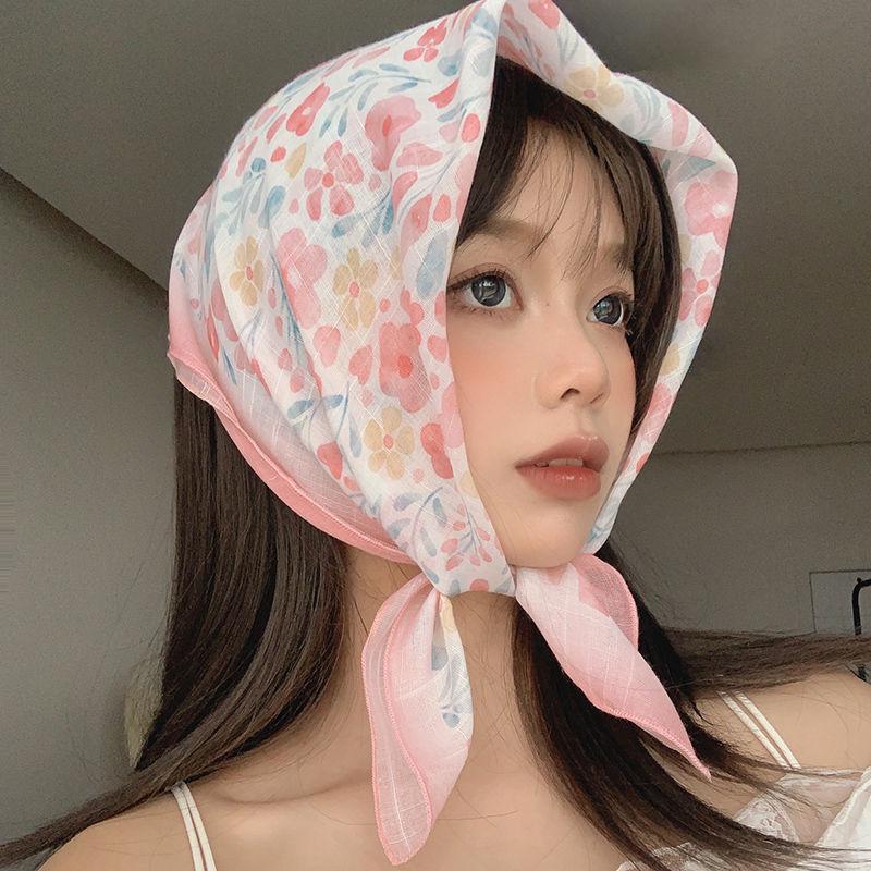 Sweet & Gentle Summer Square Scarf: Women's Pastoral Floral Design Lightweight Airy Sun Protection for Neck & Head Versatile Scarf/Headwrap