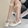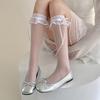 Cremefarbene Spitze-Spitze Netz Kniestrümpfe, Sommer Dünn Tupfen Herzförmig Kniehoch Schleife Lolita Socken