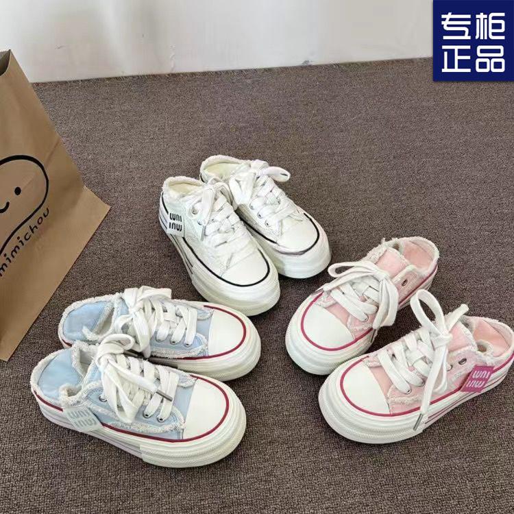 Rosa Quaste raue Kante Plateau Canvas Schuhe Damen Sommer neu zwei Tragearten lässige vielseitige Board Schuhe