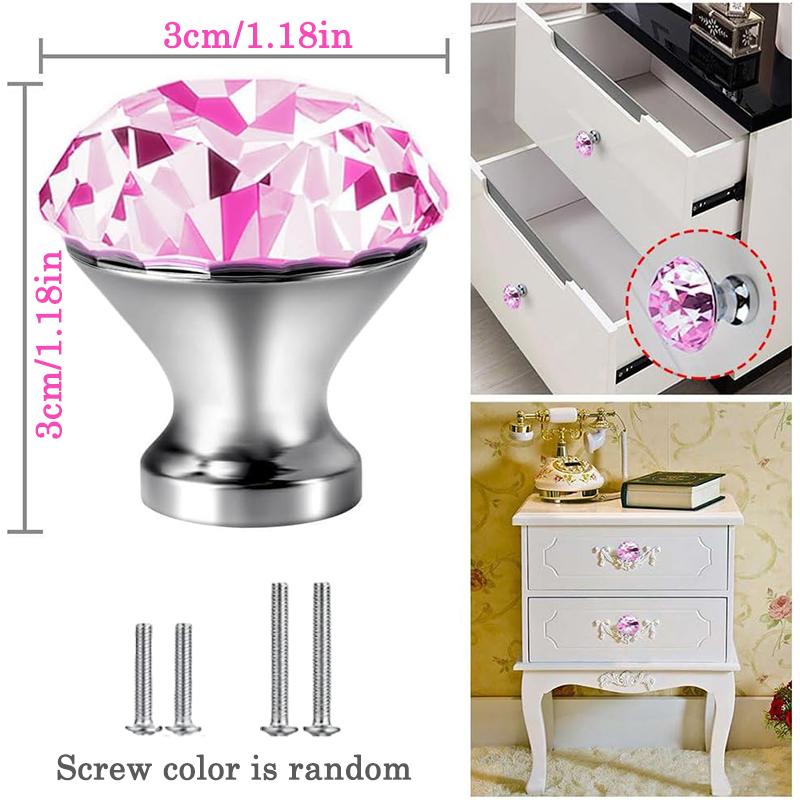 4/8 Stück Klare Rosa Runde Diamant Glas Knöpfe, Kristall Möbelgriffe mit Schrauben & Schraubendreher für Schubladen & Schränke